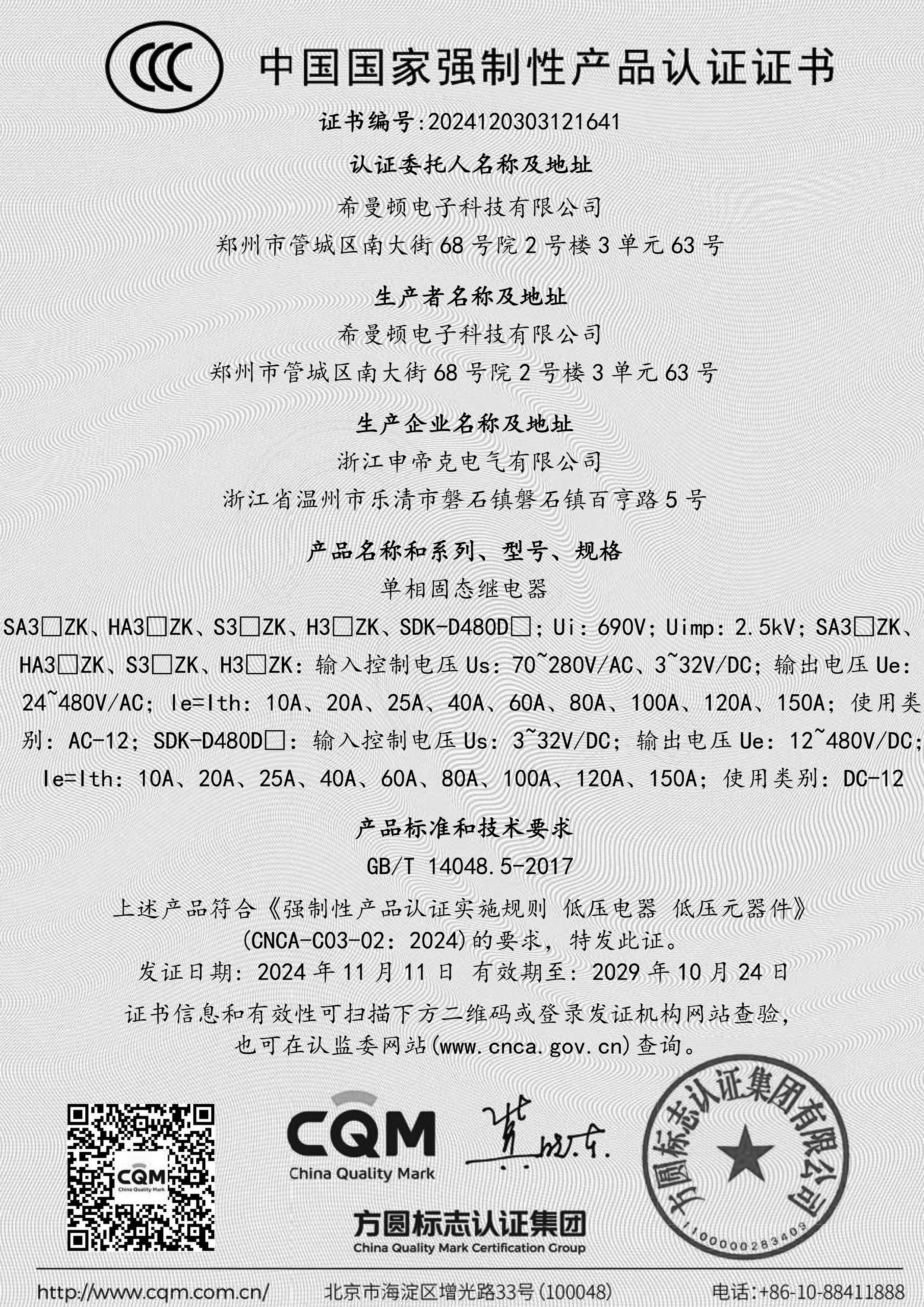 希曼頓電子科技有限公司,前身北京希曼頓科技研究所,創立于1985年,是以設計開發、銷售全系列工業級交流固態繼電器(SSR)、一體化電力調整器為主的現代化企業。希曼頓電子科技有限公司主要產品是方塊型固態繼電器、導軌小型固態調壓器、SCR模塊、全隔離調壓模塊、電磁繼電器、PCB式固態繼電器、R型調壓器、信號輸入分類、整流橋、周波控制器、電磁繼電器、電力模塊等產品。